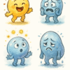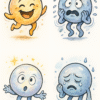 emotional bubble creatures—each bubble embodying a distinct human emotion