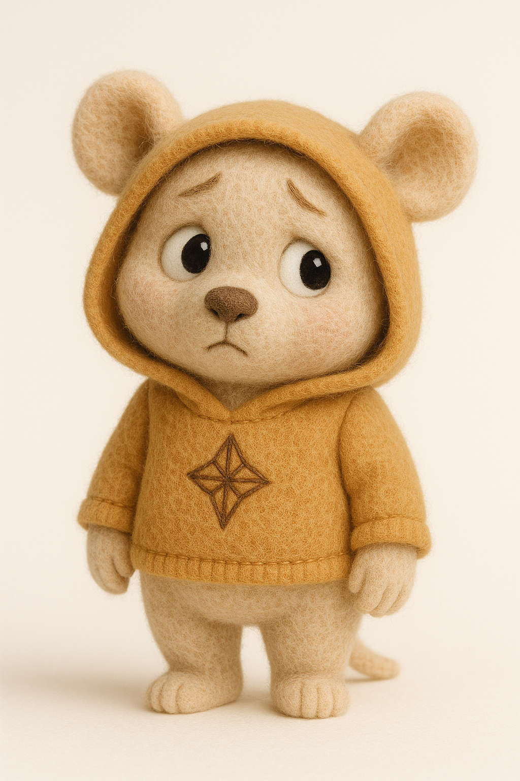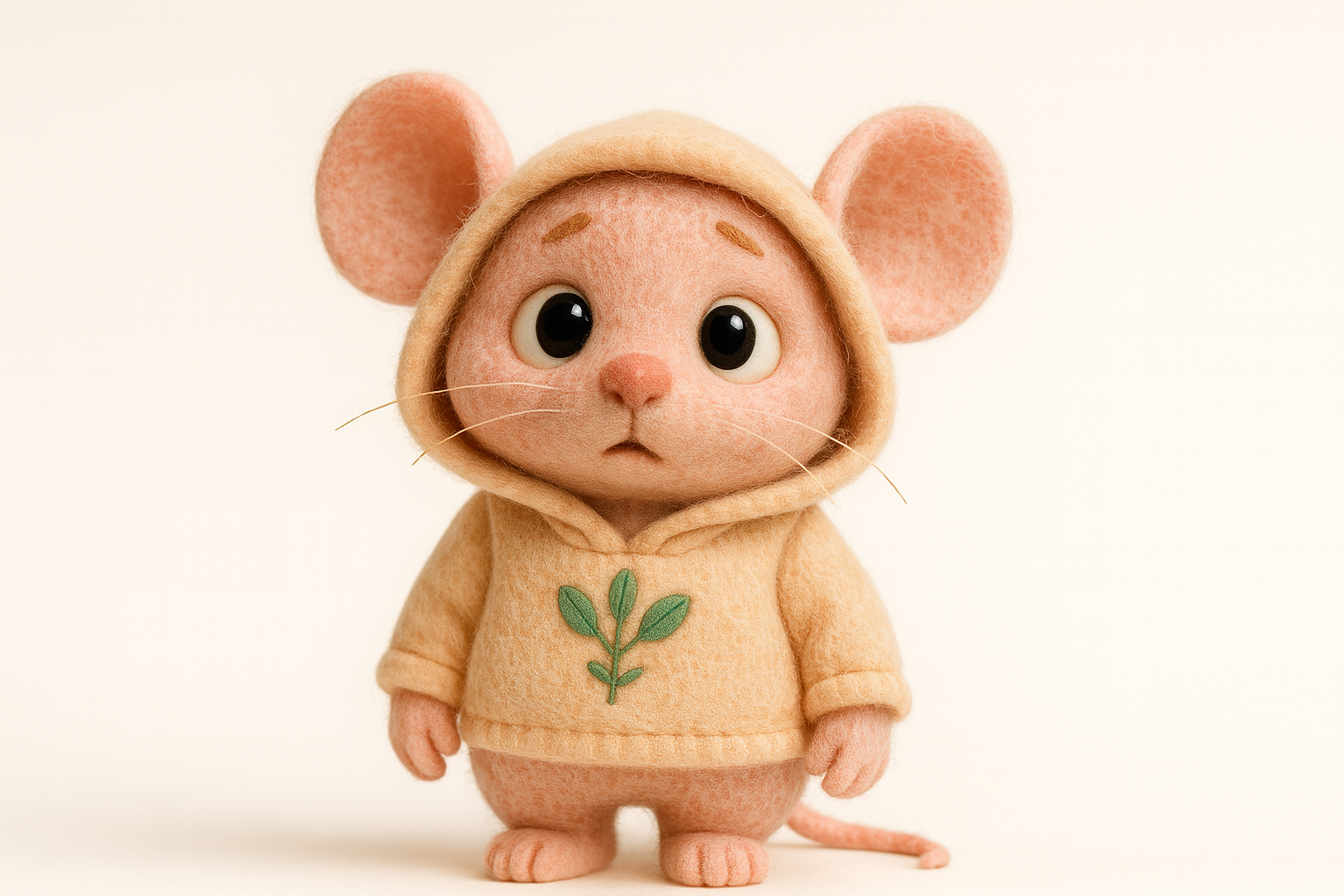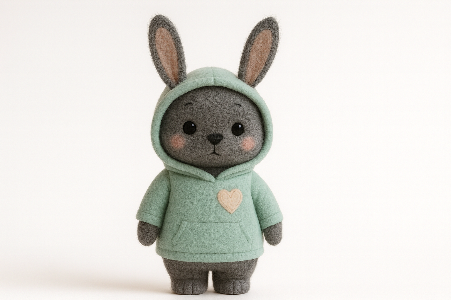 tactile textures (felt seams, embroidery thread, soft shadow folds), soft